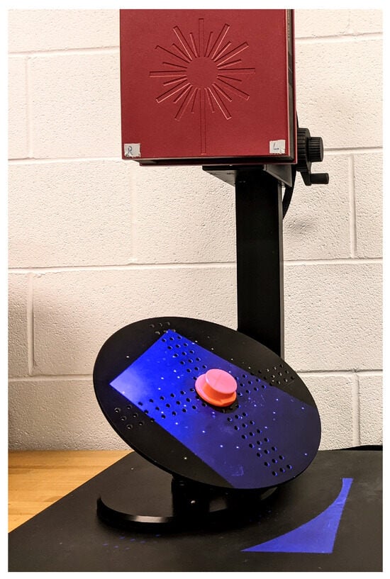 The 3D scanner used to obtain the digitized version of the 3D printed part was an Atos Core 200 (GOM, Braunschweig, Germany) shown in Figure 7. This scanner was shown to attain a probe error in measuring form of 0.002 mm and a probe error in measuring size of 0.009 mm []. The GOM Scan 2018 software interpreted the images from the scanner to produce a tessellated 3D model representing the 3D printed parts using the high-resolution setting, resulting in a mesh of approximately 550,000 points at a density of roughly 30 . The alignment of the 3D scanned models to the nominal geometry was conducted using the GOM Inspect 2018 software.