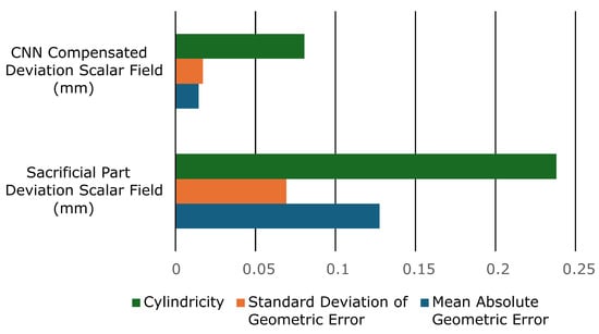 The compensated part used for validation showed an average geometric error reduction of 88.5% and a 75% reduction in standard deviation compared to the non-compensated part. By training the CNN to detect and quantify systematic patterns within the deviation field, we minimized the influence of random deviations present in the sacrificial print. This led to a 66% improvement in cylindricity of the compensated part.