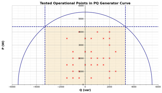 Tested operational points in the PQ generator curve.