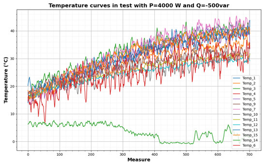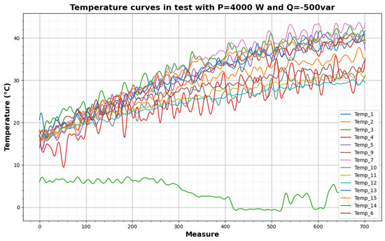 Thermal variables measured during a test (P = 4000 W, Q = −500 var).