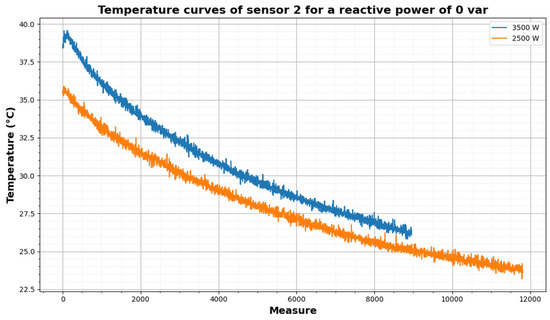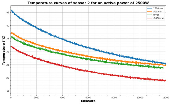 In Figure 11, a set of curves is shown representing the different cooling tests performed for P = 2500 W, while varying the reactive power.