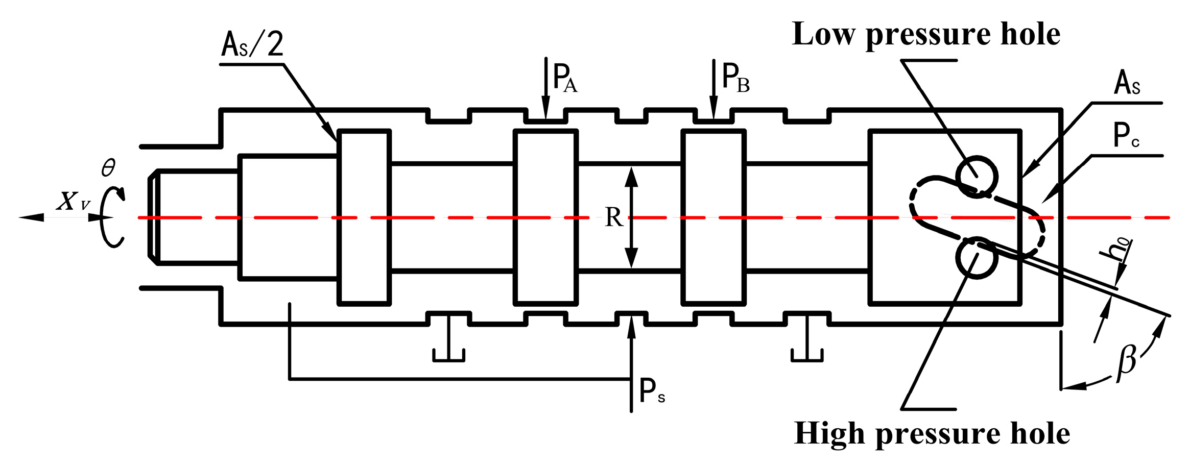 Based on the working principle of the servo spiral mechanism, the overlap height , of the high-/low-pressure ports and the helical grooves can be derived as follows: