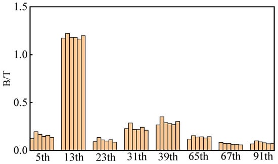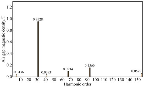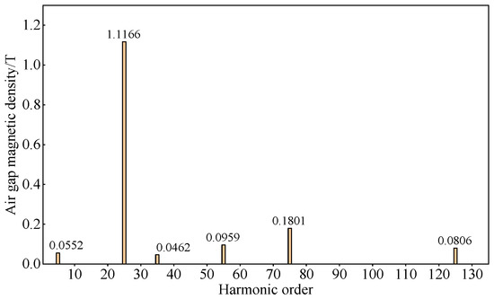 In order to conduct a detailed comparative study on the differences in the magnetic field modulation ability of different types of 12-slot PMVMs, Fourier analysis is performed on the no-load air gap magnetic density of different types of 12-slot PMVMs. The results are shown in Figure 17, Figure 18, Figure 19 and Figure 20 and Table 7.