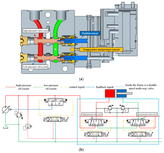 This paper focuses on the research of a cascaded structure expansion state observer based on a self-developed dual-spool electro-hydraulic valve, as shown in Figure 1.