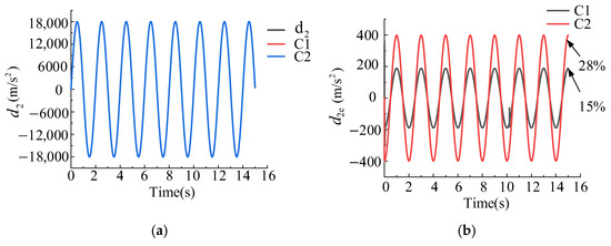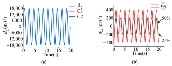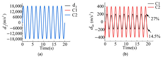 The comparison of the estimation performance of the two observers for a given external disturbance is depicted in Figure 10. The simulation results indicate that under the condition of approximate parameters both observers can achieve good tracking performance for external disturbances. According to the estimation error reflected in Figure 10b, the estimation error of external disturbance for C1 is within approximately 15% and for C2 the estimation error of external disturbance is within about 38%. Furthermore, it can be observed that due to the cascade structure the observer used in C1 has a smaller estimation accuracy error for external disturbances, which also explains that under the same controller parameters and position instructions the control error of C1 is smaller.