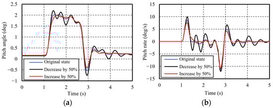 Time course response curves of suspension performance for brake test. (a) Pitch angle. (b) Pitch rate.