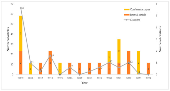 Additionally, Figure 2 illustrates the total number of citations these papers accumulated per year, providing insight into the broader academic influence and visibility of the topic over time.