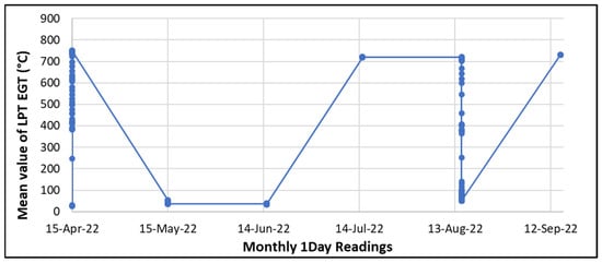 Monthly one-day readings of mean LPT EGT over a six-month period.