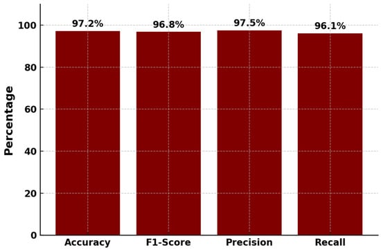 - An XGBoost classification model was developed and trained on the processed feature set, yielding a high classification accuracy (97.2%), F1-score (96.8%), precision (97.5%), and recall (96.1%).