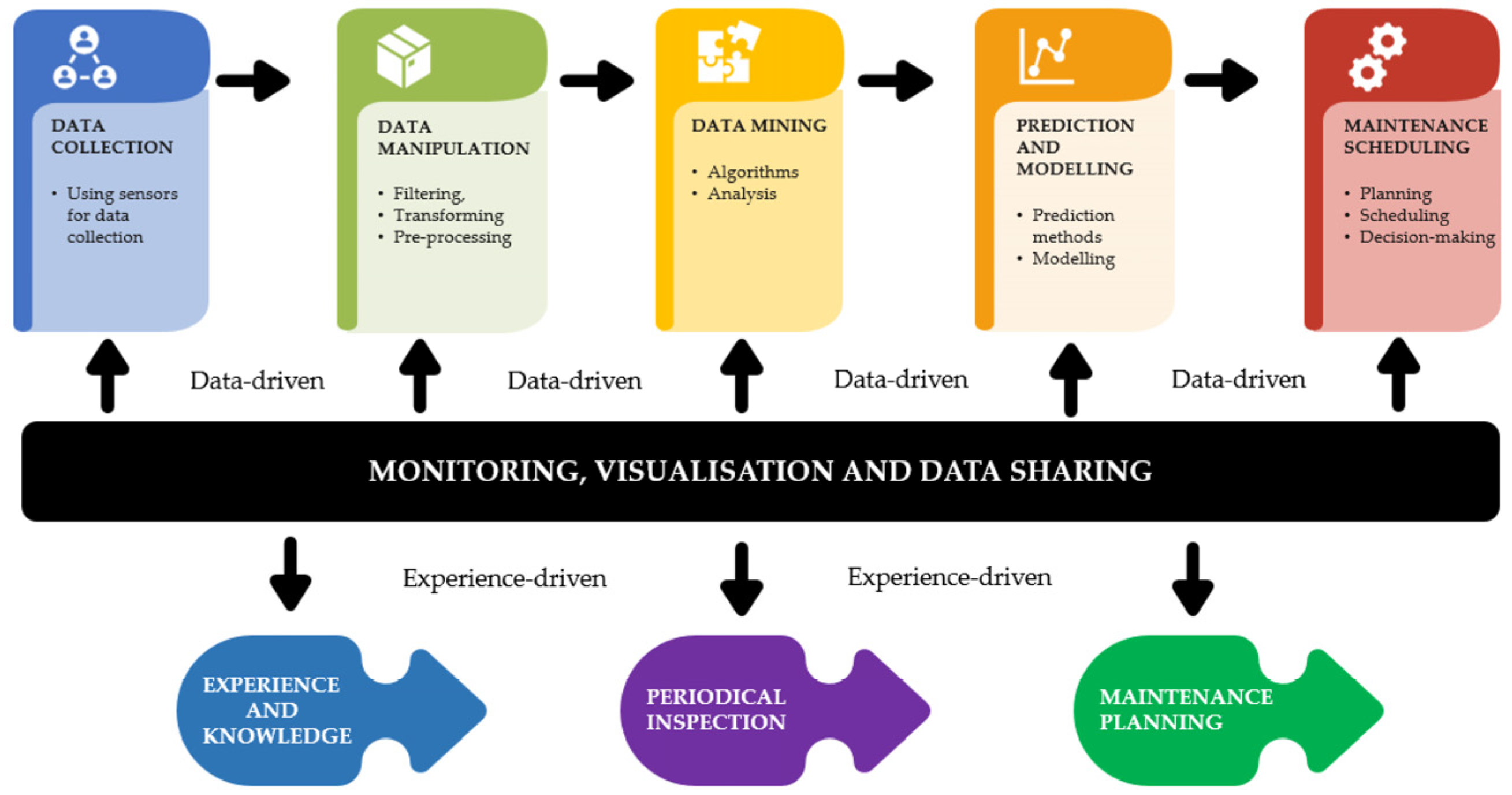 - Pech, M.; Vrchota, J.; Bednář, J. Predictive Maintenance and Intelligent Sensors in Smart Factory: Review. Sensors 2021, 21, 1470. [Google Scholar] [CrossRef]