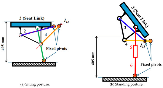 - The angular displacement of the seat link (from sitting to standing) should exceed 45°.