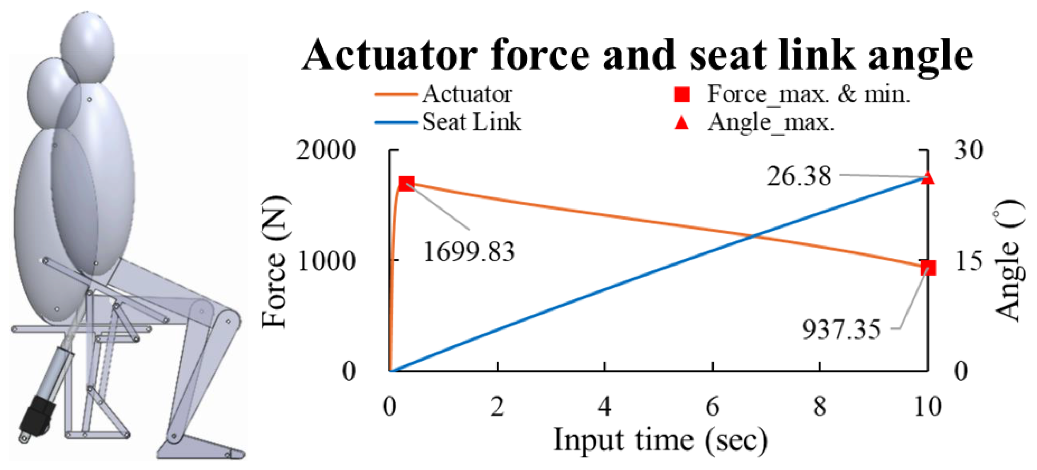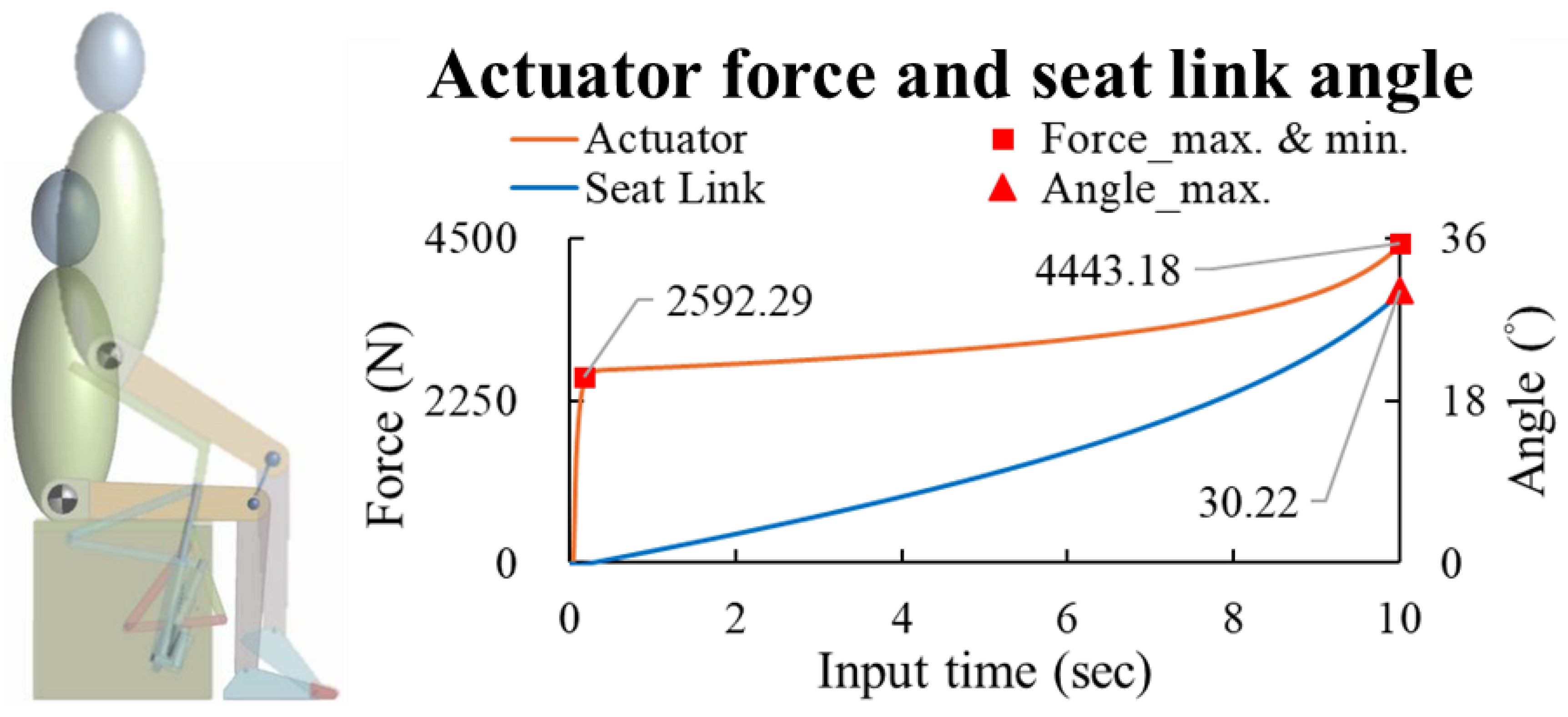 The seat link rotation angle and actuator force of the apparatus for lifting the movable base of the toilet [5].