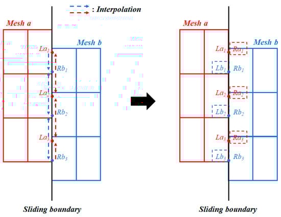 To accurately simulate the flow characteristics and aerodynamic performance of vertical axis wind turbines, this paper developed sliding mesh technology in the CFD solution program HUNS3D. To achieve communication of calculation data on both sides of the sliding boundary, this paper adopts the sliding mesh algorithm strategy shown in Figure 2. Taking surface element as an example: the closest surface element on the other side of the sliding boundary is used as the contribution element, and the flow field values of the contribution element and all adjacent surface elements are used as the interpolation basis to obtain the flow field values on the outer side of the sliding surface , and then proceed with subsequent flux calculations.