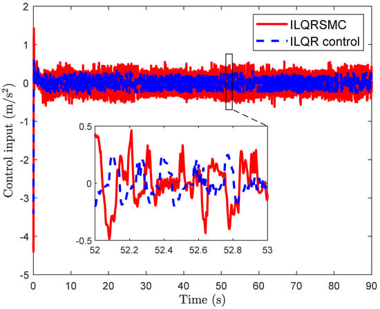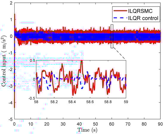 This metric reflects the control effort, where smaller values indicate more energy-efficient control. From Table 2, the proposed control exhibited a higher value of IAC compared to the ILQR control, indicating that it required a greater control effort to compensate for the lumped disturbance.