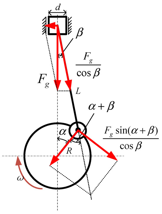 where d is the cylinder diameter; p is the gas pressure in the cylinder; α is the crankshaft angle of rotation; β is the angle between the connecting rod and the centerline of the cylinder; R is the crank length; L is the length of the connecting rod; ω is the engine rotational speed; mj is the mass of the reciprocating moving parts.