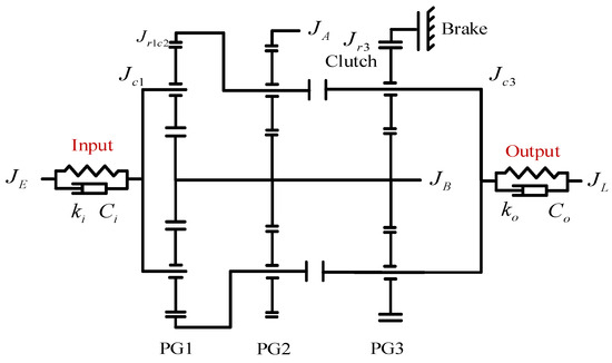 To address the control-strategy mismatch caused by oversimplified modeling, this study employs a model order reduction technique [38] to reconstruct the drivetrain system. Figure 4 illustrates the reduced-order dynamic model of the drivetrain obtained through this approach.