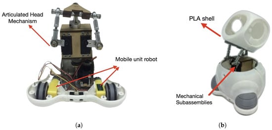 Mechanical structure: (a) Articulated head mechanism and mobile base unit. (b) Shell.