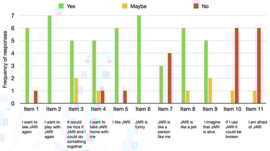 | Do you like JARI? | To evaluate the child’s affective response to the robot’s behavior or expression. |