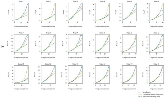 Human soft tissues exhibit properties such as linearity, nonlinearity, viscoelasticity, and incompressibility. Traditional physical quantities in elasticity theory, such as Lamé constants, Young’s modulus, damping coefficients, and stress density, are insufficient to fully characterize these properties of soft tissues [40,41]. The research literature [42] indicates that the force-displacement relationship of soft tissues is nonlinear, which aligns with experimental results. Given that the experimental subjects can be categorized into three body types—underweight, standard, and overweight—based on BMI, this study selects one subject from each category through random sampling to derive the model.