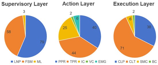 CPLLEs vary substantially in hardware configurations, control approaches, target user groups, and usage scenarios. Treating all control strategies as a uniform whole in a generalized discussion not only hinders the extraction of representative common features across designs but also leads to redundant descriptions of functionally similar components. Therefore, the control strategy analysis should focus on the core objective of facilitating effective rehabilitation training. As shown in Figure 3, the core functional modules of CPLLEs related to lower-limb rehabilitation are typically organized into a three-layer structure: intent recognition, motion planning, and actuator execution. This structure provides a systematic foundation for analyzing control architectures.
