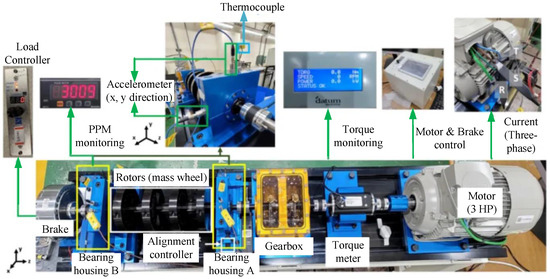 - Jung, W.; Kim, S.H.; Yun, S.H.; Bae, J.; Park, Y.H. Vibration, acoustic, temperature, and motor current dataset of rotating machine under varying operating conditions for fault diagnosis. Data Brief 2023, 48, 109049. [Google Scholar] [CrossRef]