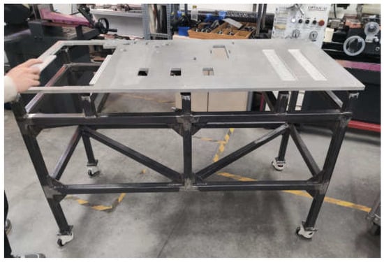 The first step is to manufacture and assemble the machine’s structure. In Figure 9, the structure is shown before and after welding the metal profiles and the base table.