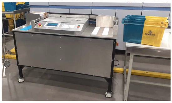 A canceling machine is a device designed to mark and void postage stamps on envelopes or postcards, thus preventing their reuse. Since their origin in the 19th century, these machines have evolved significantly, automating the franking and mail sorting process. Their main advantages include operational efficiency [,] with high processing capacity, reduced labor costs, and improved traceability thanks to technologies such as optical character recognition (OCR) address recognition software [,] and digital printing. However, they also have drawbacks, such as high acquisition and maintenance costs [] and high size.
