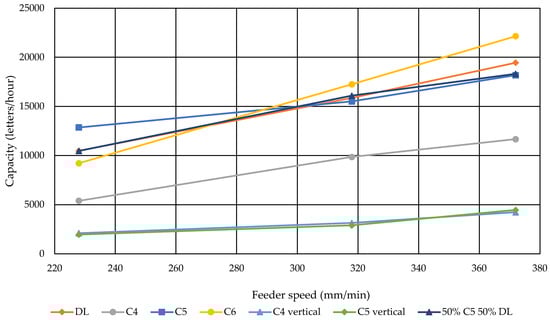 Feeder speed vs. capacity graph.