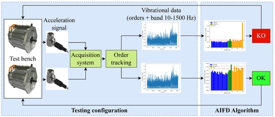 An Artificial Intelligence Fault Detection (AIFD) algorithm, exploiting AEs, is introduced to monitor the motor’s condition during testing. The AIFD algorithm analyses the extracted accelerometer data to determine whether the motor is in an “OK” or “KO” state. If the motor is in a “KO” state, the algorithm immediately stops the test.
