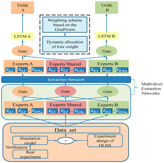 In this section, we first introduce the data generation method based on optimal Latin hypercube sampling combined with finite element simulation experiments. Then, we introduce the refined PLE-LSTM network design derived from the PLE multi-task framework. Lastly, we detail the strategy for enhancing loss functions for multiple tasks through GradNorm. The overall framework is shown in Figure 1.