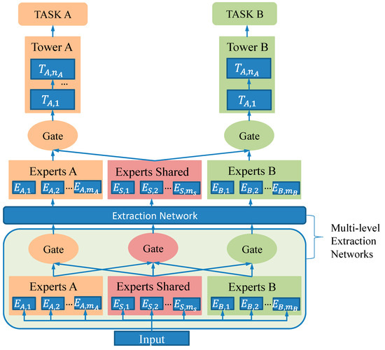 - Tang, H.; Liu, J.; Zhao, M.; Gong, X. Progressive layered extraction (ple): A novel multi-task learning (mtl) model for personalized recommendations. In Proceedings of the 14th ACM Conference On Recommender Systems, Virtual, 22–26 September 2020; pp. 269–278. [Google Scholar]