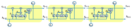 Here, denotes the nonlinear Sigmoid function; represents the input gate; represents the forget gate; is the updated cell state; is the output gate; is the input information; is the output information obtained; represents the respective weights; and represents the corresponding bias terms.