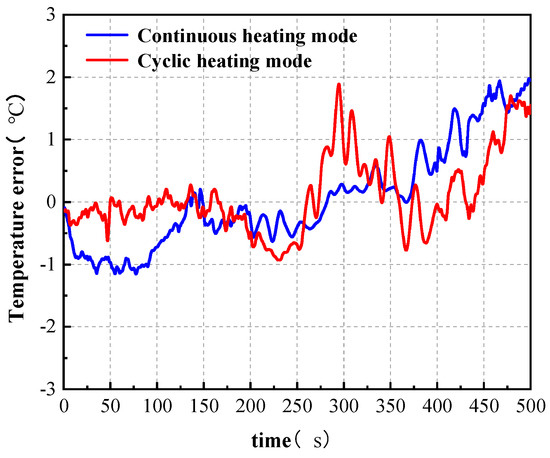 Temperature error curves of numerical simulation and experiment under two heating modes.
