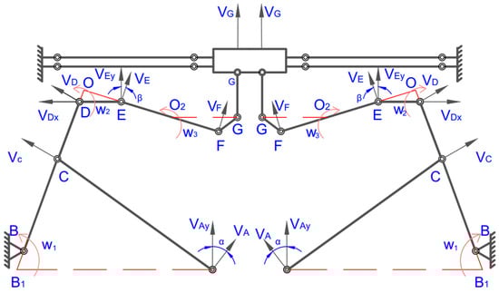 The rotary angle and angle speed of every linkage are symbolized. The connections among the rotational angles are established by: