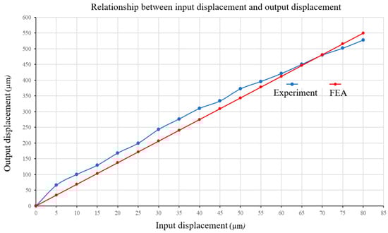 FEA results of input–output displacements and parasitic motion inaccuracy (unit: µm).