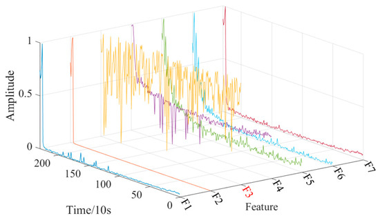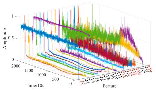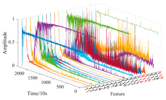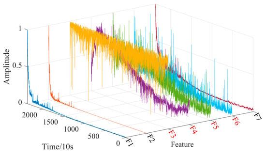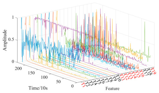 To eliminate the influence of each dimension of the feature, improve the convergence speed of the deep learning model, facilitate data analysis and processing, and avoid the problem of gradient exploring in the prediction process, this paper uses the max–min normalization method to map the extracted multi-domain feature set to the [0,1] interval. The calculation formula is as follows: