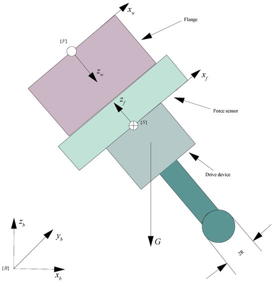 When polishing a surface, the force exerted by the polishing tool () can be measured. A force transducer is mounted between the robot end-effector and the polishing tool for this purpose. The measured resultant force () during processing mainly comprises three components: the force exerted by the component on the polishing tool (), the gravitational force of the polishing tool itself (), and the inertial force ().
