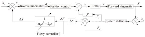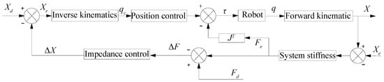 The desired reference trajectory for the force is denoted as Xd, while the desired force is represented by Fd. The relationship of the force error ΔF and location compensation ΔX can be expressed as [37]: