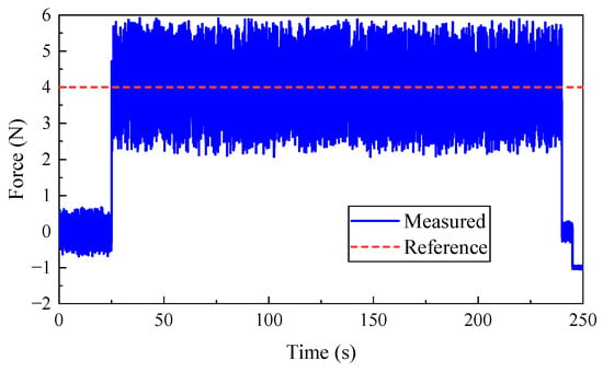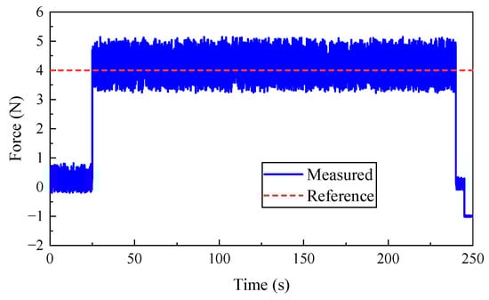 The sensors are used to measure the normal expected force of the tool for different processes. The comparison between the measured and the reference under the traditional impedance control, fuzzy adaptive impedance control, and vision-guided fuzzy adaptive impedance control are shown in Figure 19, Figure 20 and Figure 21, respectively. The comparison results indicate significant deviations and fluctuations between the measured and the reference of the traditional impedance control, resulting in unstable control. These force fluctuations typically manifest as chatter during the polishing process, leading to uneven material removal and compromised surface quality.