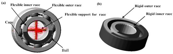 - Sun, X.; Zhang, W.; Tian, H. Theoretical analysis of cylindrical rolling bearing with flexible races mounted in groove elastic support. J. Adv. Mech. Des. Syst. Manuf. 2020, 14, AMDSM0102. [Google Scholar] [CrossRef]