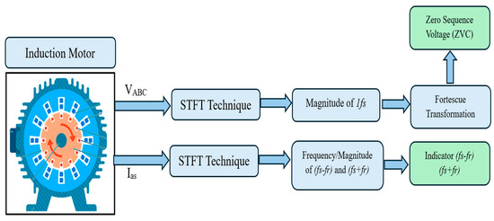 It is worth mentioning that the amplitudes of these stator current harmonics are tracked by the STFT technique, which allows for the continuous estimation of their magnitudes from the signal’s spectrum. This continuous amplitude data enables online or real-time monitoring for induction motor’s fault detection.