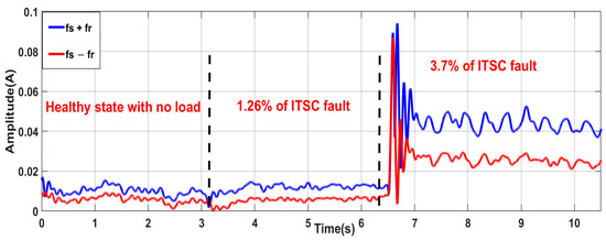 Some studies [38,39,40] state that the ITSC fault generates stator current harmonics at frequencies defined by