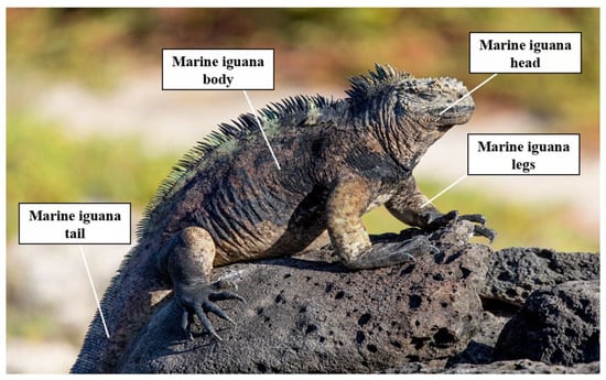 - Berry, K.A.; Muñoz-Pérez, J.P.; Vintimilla-Palacios, C.P.; Clemente, C.J. Morphological and performance modifications in the world’s only marine lizard, the Galápagos marine iguana, Amblyrhynchus cristatus. Biol. J. Linn. Soc. 2021, 133, 68–80. [Google Scholar] [CrossRef]
