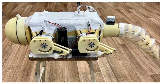 - Ahmed, F.; Waqas, M.; Shaikh, B.; Khan, U.; Soomro, A.M.; Kumar, S.; Ashraf, H.; Memon, F.H.; Choi, K.H. Multi-material bio-inspired soft octopus robot for underwater synchronous swimming. J. Bionic Eng. 2022, 19, 1229–1241. [Google Scholar] [CrossRef]