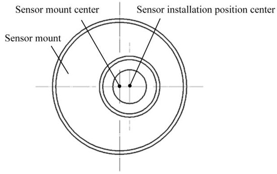 The structure of the displacement sensor mounting seat is shown in Figure 8. The sensor mounting seat adopts an eccentric structure, and the center of the sensor mounting position has an eccentric distance of 1.5 mm relative to the center of the sensor mounting seat. The displacement adjustment can be realized in the peripheral direction of the sensor by 3 mm, and the influence of the sensor installation error on the test accuracy can be reduced by displacement adjustment.
