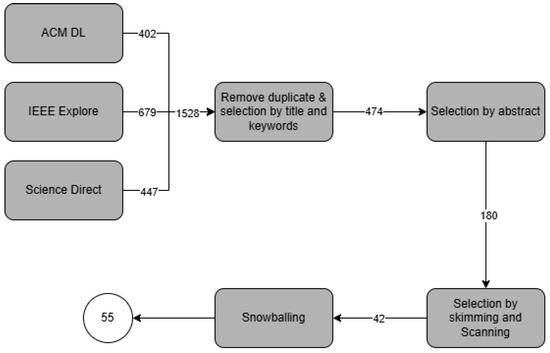 - Conducting: During this phase, we put into practice the defined protocol. First, we began by searching for a set of candidate papers on security by design. During this step, we used an automatic search in three databases (IEEE explore, ACM Digital Library, and ScienceDirect). Another technique used for searching for candidate papers is snowballing. It is used after the selection of the first set of primary studies. Second, the candidate papers are then filtered to obtain the final list of primary studies that correspond to and answer our research questions. Third, we extract data according to the extraction scheme defined in the first phase. Finally, we synthesize the data collected and analyze them using different types of graphics. This activity elaborates on the information extracted in order to answer the research questions one by one.