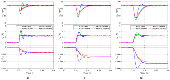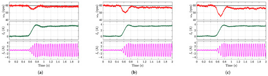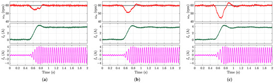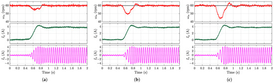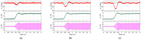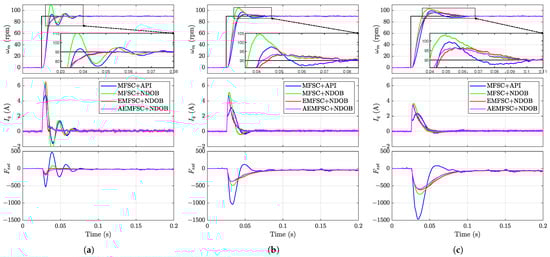 Speed responses of the MFSC-API controller under load torque variations: (a) ; (b) ; (c) .