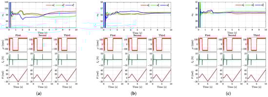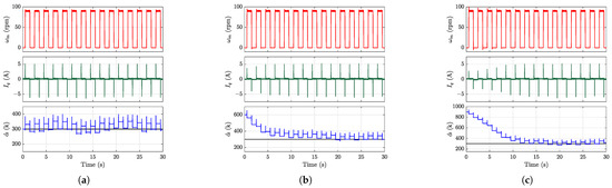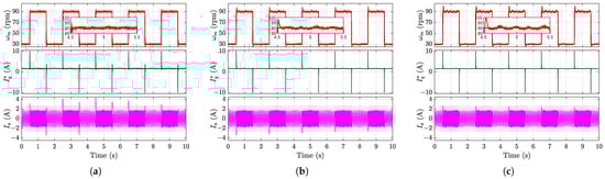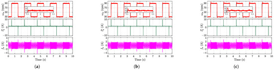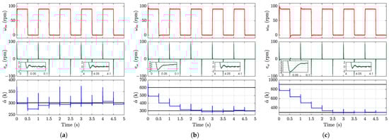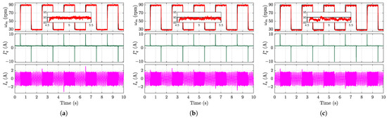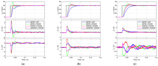 Speed responses of the MFSC-API controller under square-wave speed: (a) ; (b) ; (c) .