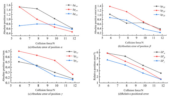 When the robot is subjected to different collision forces at different positions, its absolute and relative position errors are shown in Figure 13.