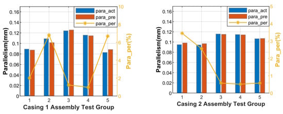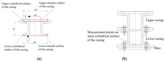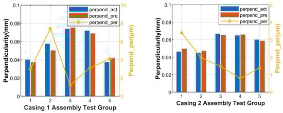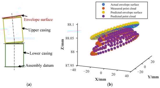 The error magnitudes were sampled based on a normal distribution within the tolerance range, and the spatially distributed form errors were characterized based on experimental measurement data from existing manufacturing processes. The perpendicularity datum axis was constructed based on measured data from the inner cylinder of the casing, and the basic dimensional parameters of the contributing loops are shown in Figure 17. After 1000 simulation runs, the pose errors [dz, σx, σy] of the envelope surface at different tolerance grades were obtained, along with the parallelism and perpendicularity.